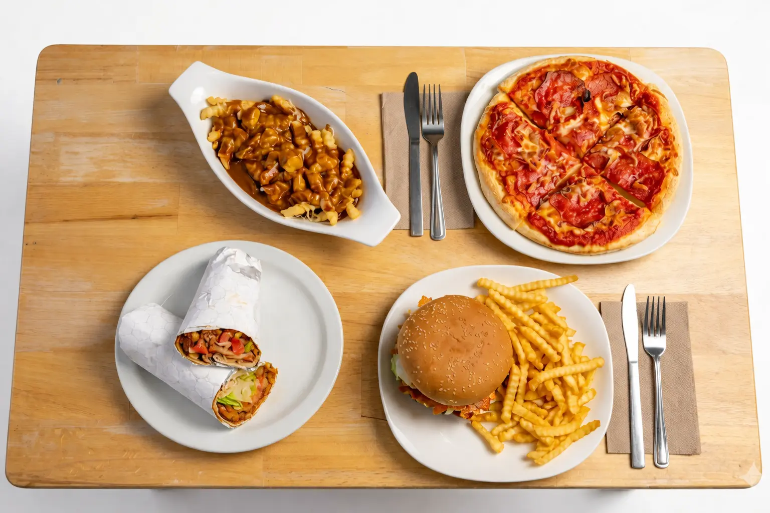 Explore the full Burger Beast menu in southeast Red Deer, AB — from our signature Baron, Boss, Monster and Mushroom Bacon Swiss burgers to Halifax-style donairs, fresh pizza, crispy wings, loaded subs, curly fries and thick hand-spun milkshakes. Every dish is made with seasoned patties, fresh buns and scratch-made sauces — read our story, browse the food gallery or contact us on Northey Avenue for takeout, dine-in or delivery.